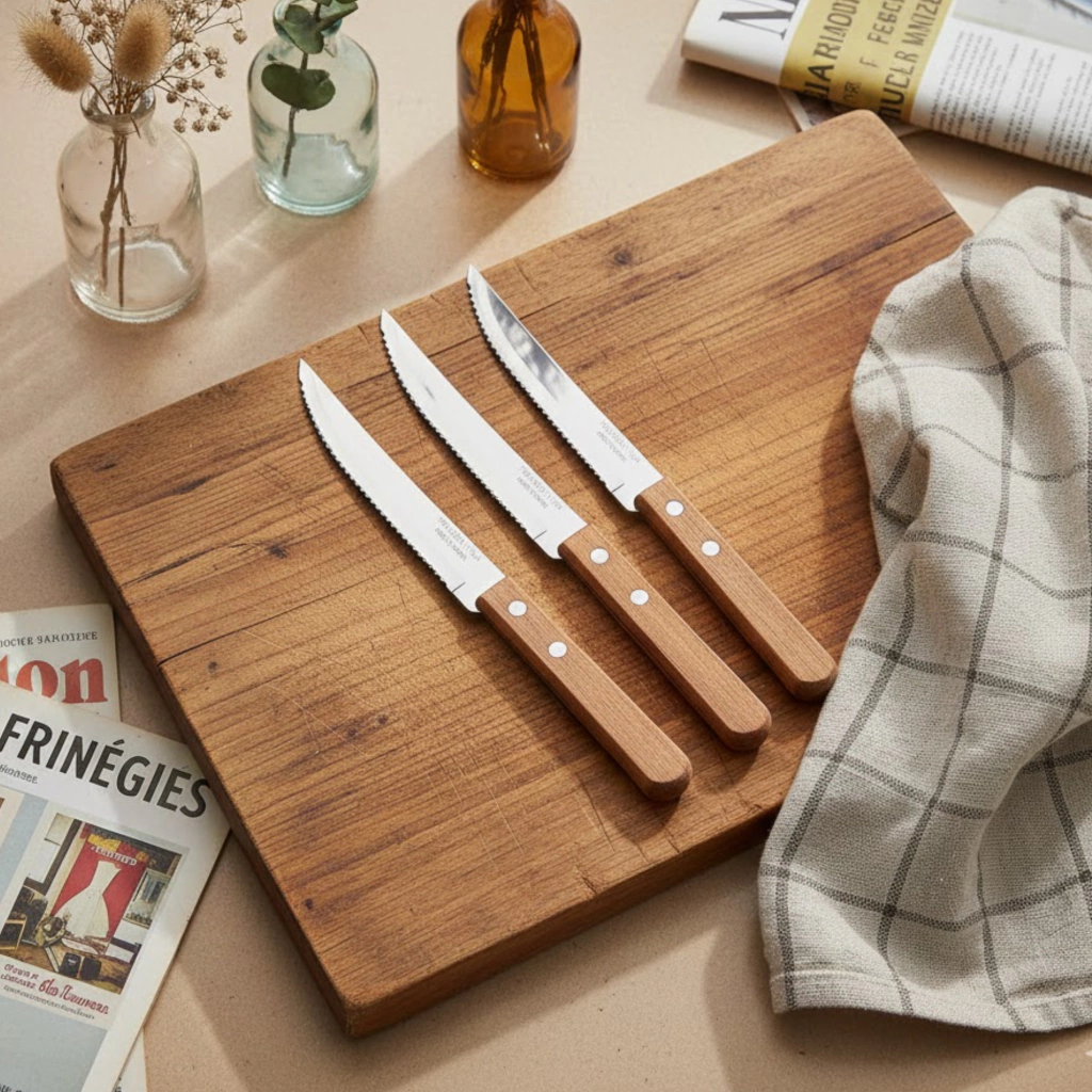 Incorporá calidad y estilo a tu cocina con este set de 3 cuchillos Dynamic, fabricados en acero inoxidable de alta resistencia y con mango de madera ergonómico que brinda un agarre cómodo y seguro.