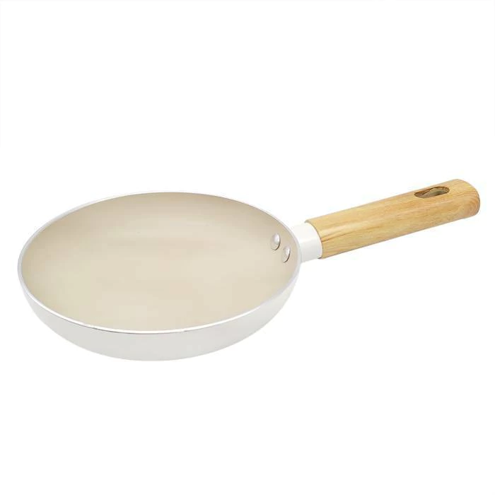 La mini sartén con mango símil madera es ideal para cocinar porciones pequeñas con estilo y practicidad. Fabricada en aluminio con antiadherente color crema, permite una cocción uniforme y evita que los alimentos se peguen. Su mango símil madera ofrece un agarre cómodo y seguro, agregando un toque elegante a tu cocina.